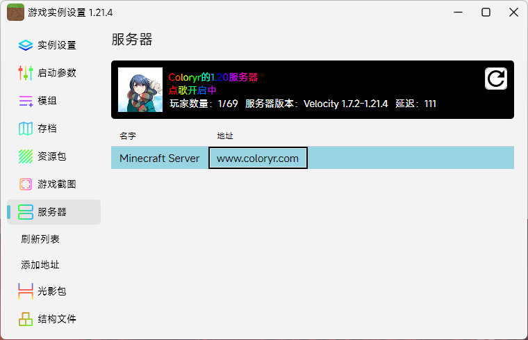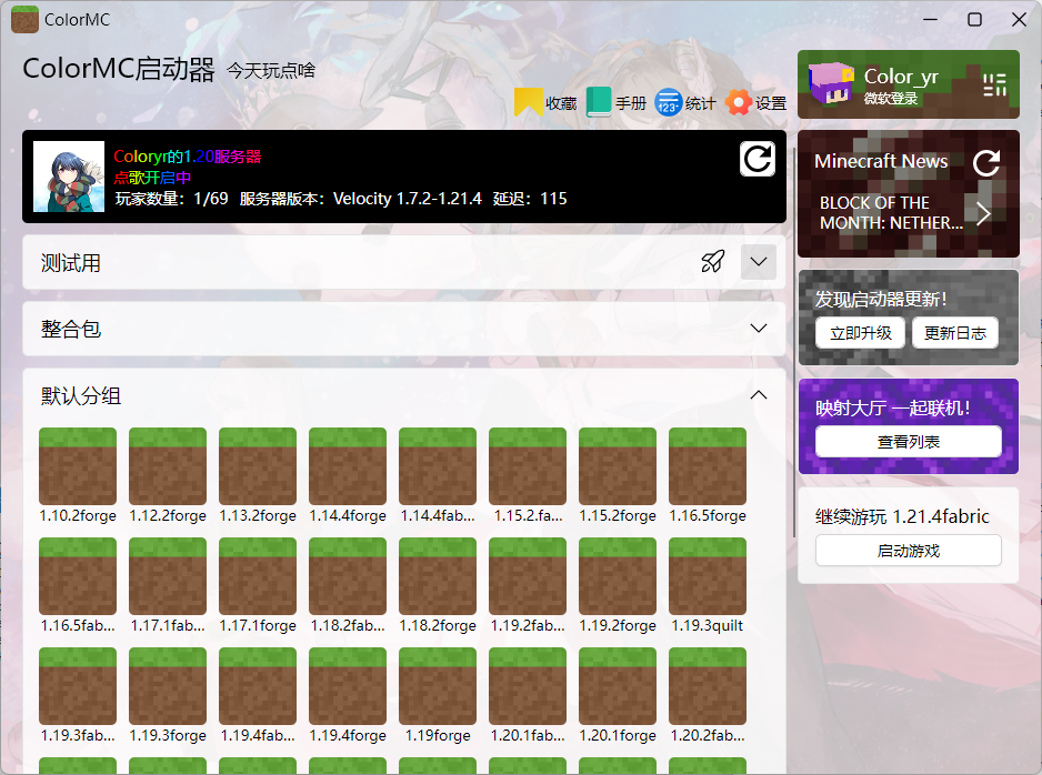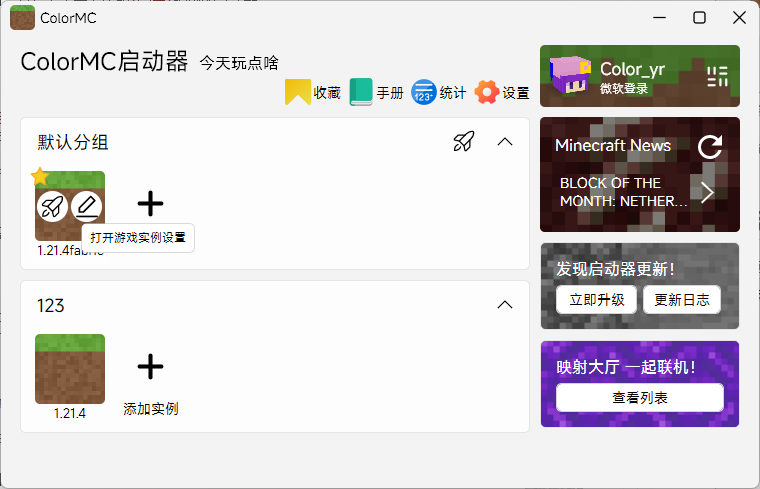 ColorMC是多实例游戏启动器,启动器是以游戏实例为单位启动游戏游戏实例相当于一个独立的游戏配置