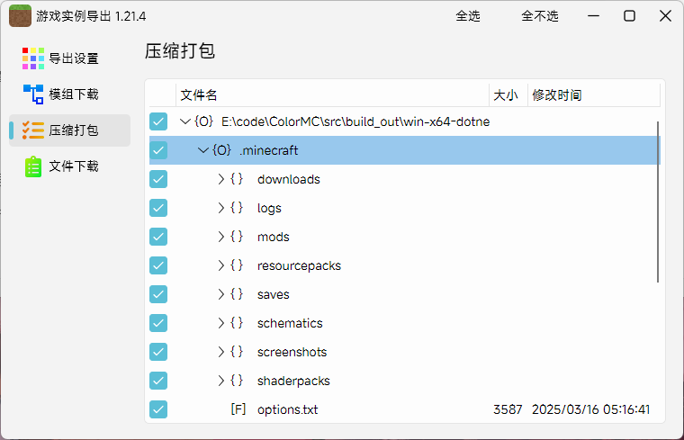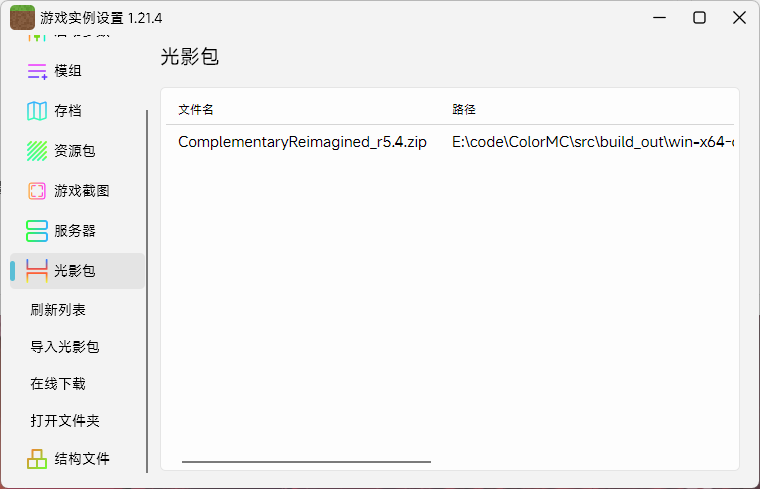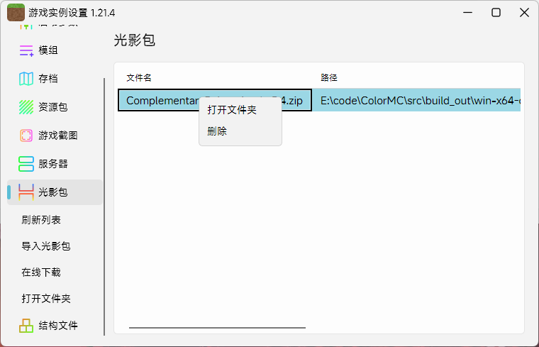 附带启动器导出则是一个.zip压缩包,若不是则是一个.colormc压缩包,可以拖进启动器主界面内导入