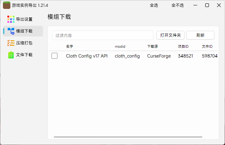 勾选一个游戏实例后会排除不需要的文件,你需要按需勾选上你需要的文件