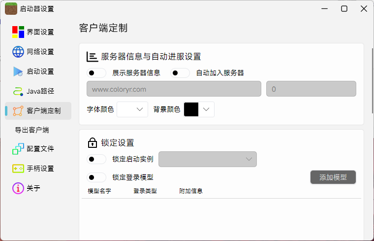 - 服务器信息 可以设置在主界面显示服务器及自动进服