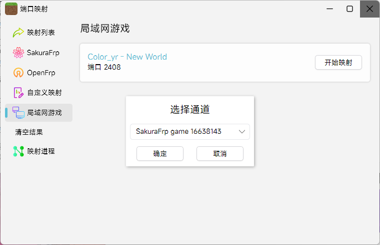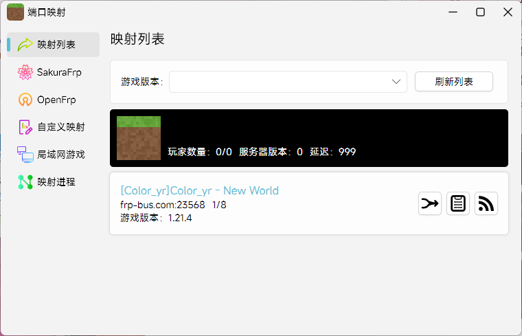 映射大厅集成端口映射,目前支持NatFrp与OpenFrp两个映射平台集成