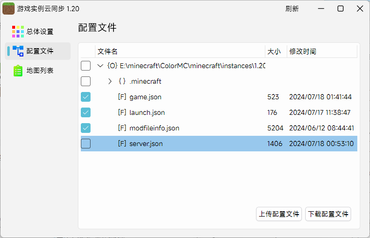 配置文件的上传,请确保整个游戏实例关键的文件都上传了
