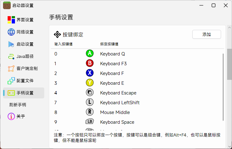 手柄设置启动器支持手柄输入到游戏内,无需安装手柄模组也能体验游戏内手柄支持
