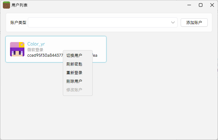 - 导出所有账户 导出所有登录的账户,只能导入到ColorMC启动器