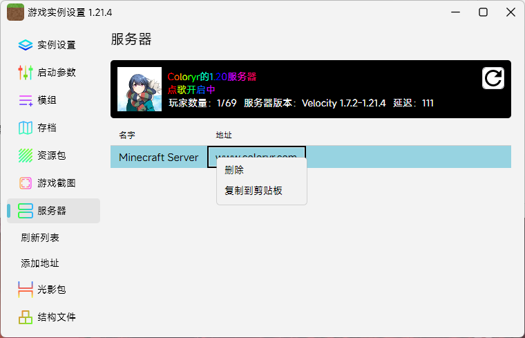 ColorMC是多实例游戏启动器,启动器是以游戏实例为单位启动游戏游戏实例相当于一个独立的游戏配置