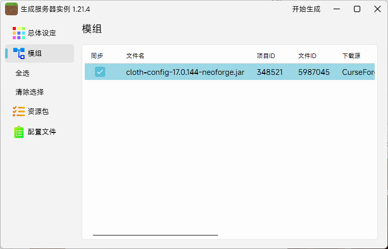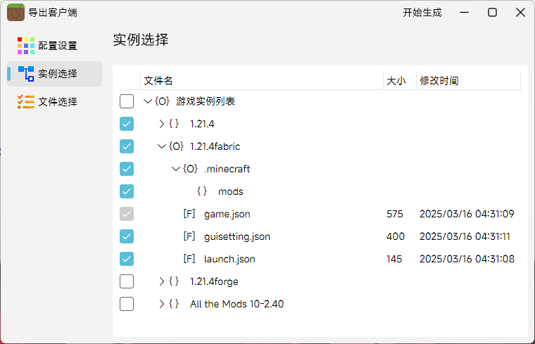 勾选一个游戏实例后会排除不需要的文件,你需要按需勾选上你需要的文件