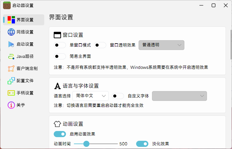- 背景音乐 在启动器启动时循环播放音乐,支持网络音乐链接