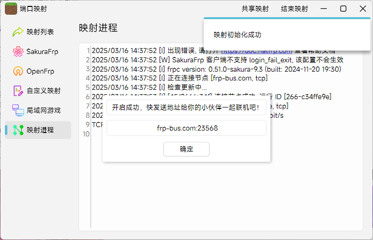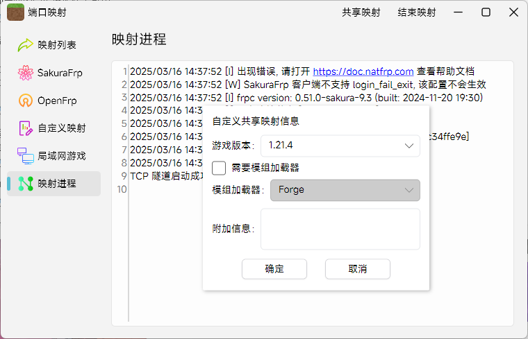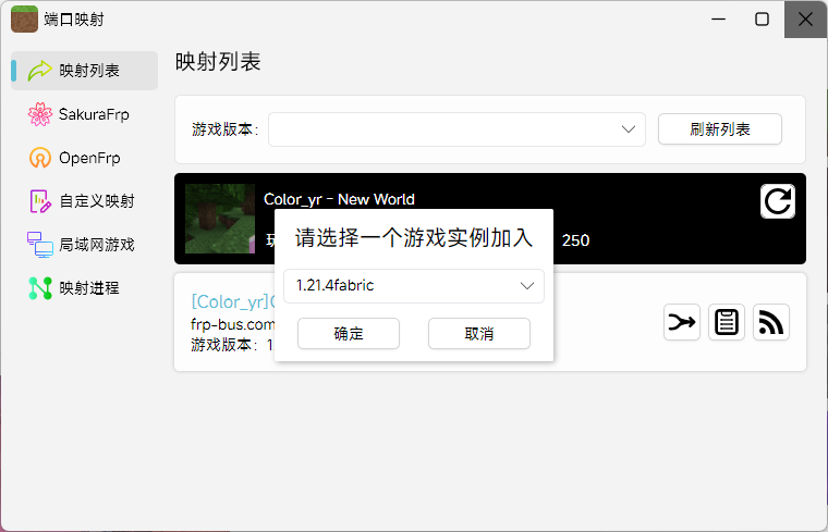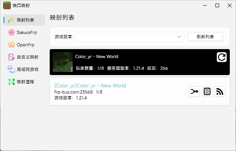 映射大厅集成端口映射,目前支持NatFrp与OpenFrp两个映射平台集成